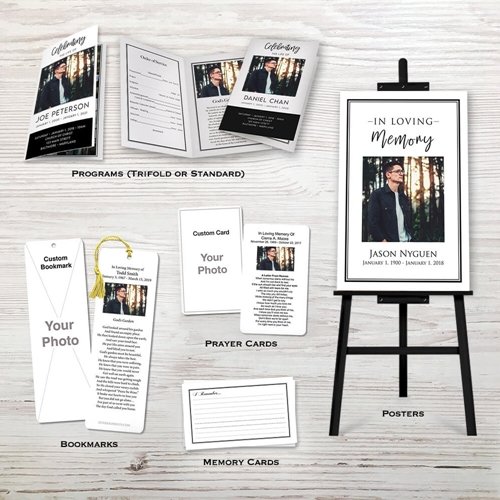 Memorial Package is designed to honor a loved one’s memory with beautiful oceanfront imagery, capturing the tranquility of the sea. This package includes everything you need for a memorable funeral or memorial service, including trifold or standard programs, prayer cards, bookmarks, memory cards, and a poster. The calming ocean theme provides a serene and peaceful backdrop, perfect for reflecting on a life well-lived.